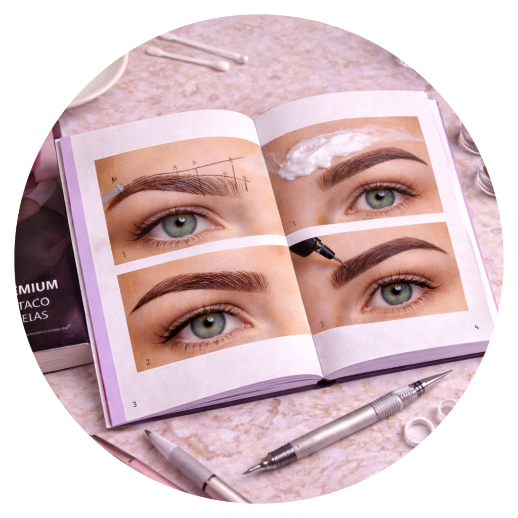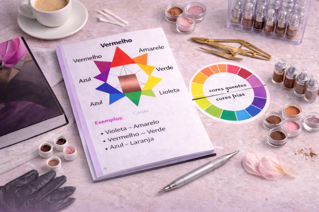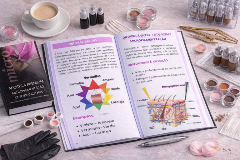 Guia completo + caderno de treino: tudo que você precisa para dominar técnica, acertar a cor do pigmento e fazer seu primeiro atendimento com segurança.