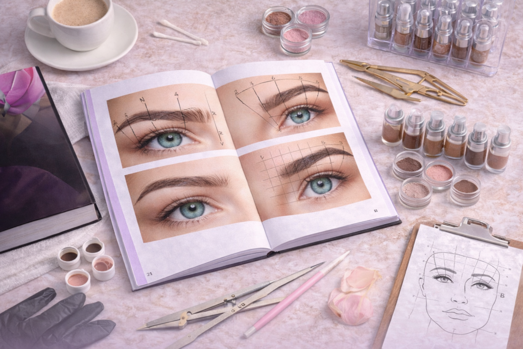 Aprenda a calcular o início, o arco e o fim da sobrancelha com precisão — e chegue em cada cliente com segurança, não no olhômetro.