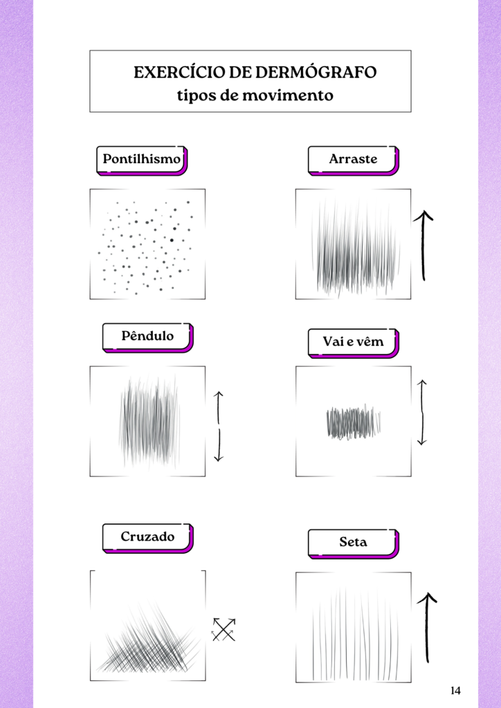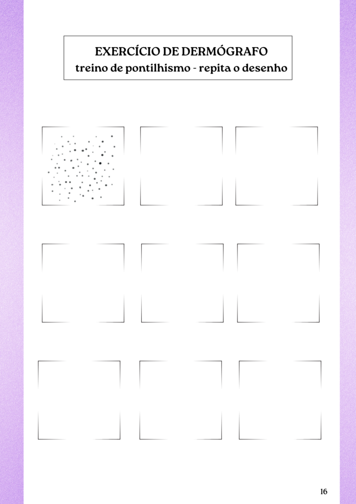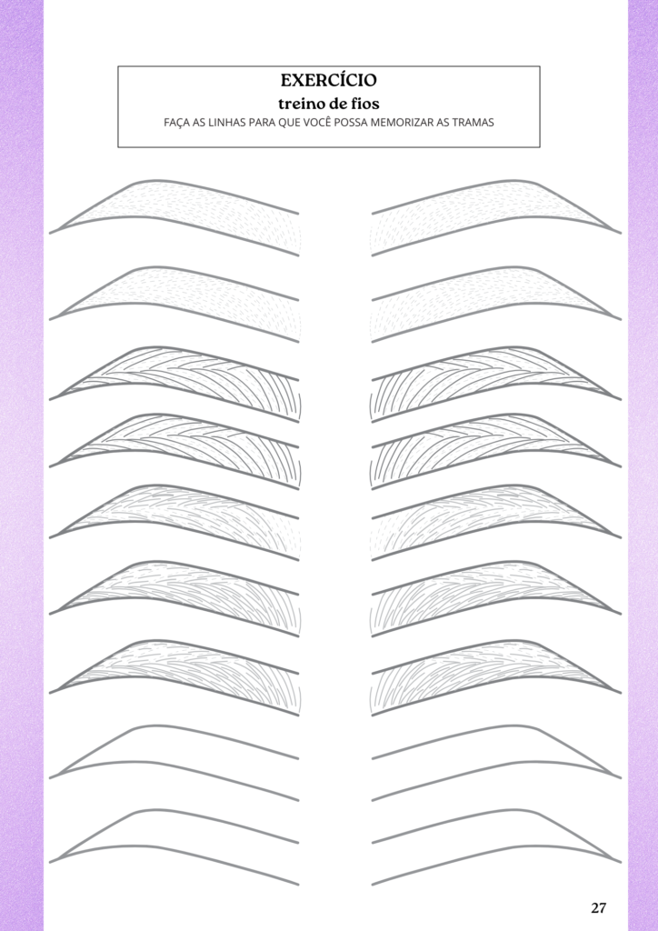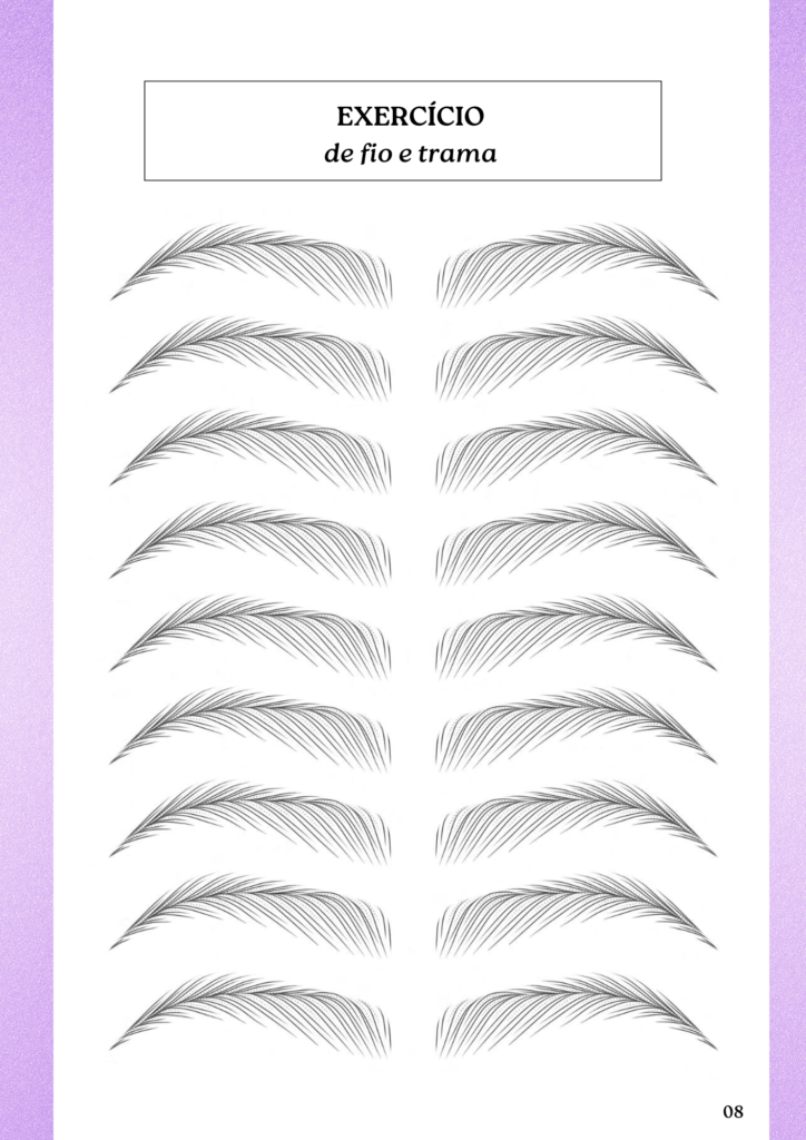 Use o caderno de treino para praticar os fios, pressão e profundidade antes de tocar na cliente.