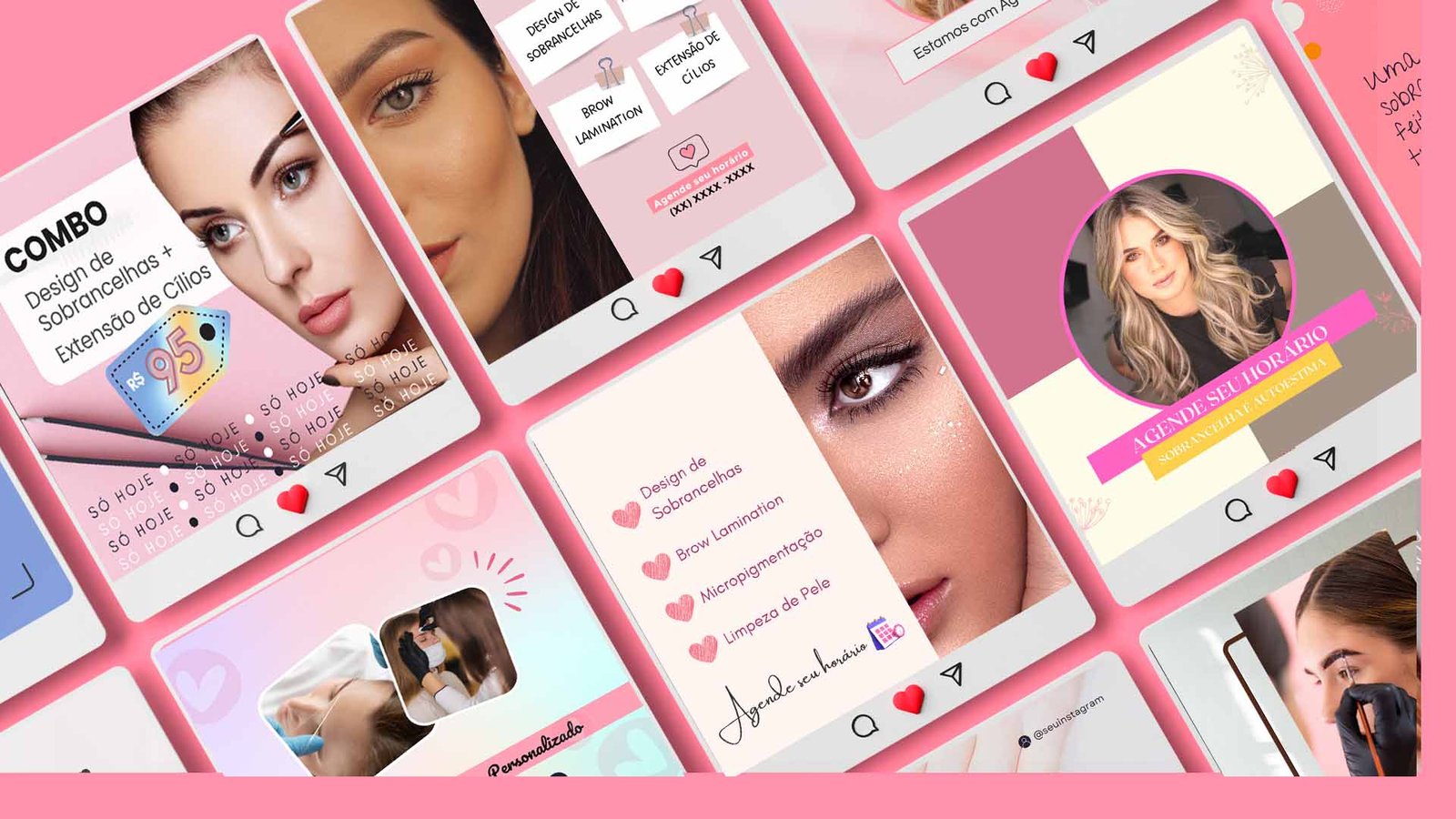 Nosso Mega Pack Canva foi cuidadosamente planejado para profissionais na área de Designer de Sobrancelhas, para otimizar o tempo das empreendedoras que tem dificuldade na criação de posts para suas redes sociais.