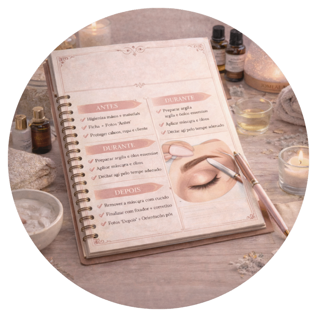 Passo a passo com argila + ativos + rotina de preservação para preencher falhas, recuperar o aspecto natural e fidelizar clientes com resultado visível.