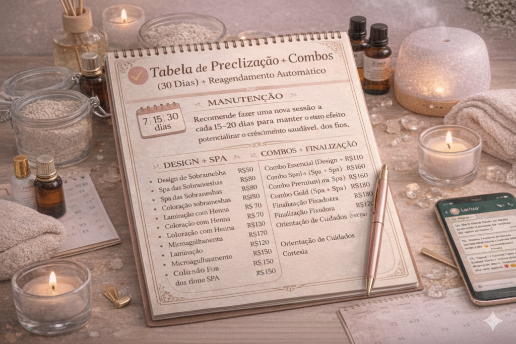 Scripts prontos para você vender o SPA no atendimento e no direct: o que falar em cada momento, como apresentar o benefício sem enrolação e respostas para as objeções mais comuns (preço, “não preciso”, “já faço design”, “tenho medo de irritar”).